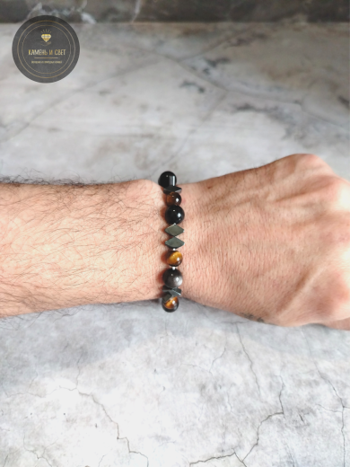 Мужской браслет «Триада власти» – тигровый глаз, обсидиан, гематит.